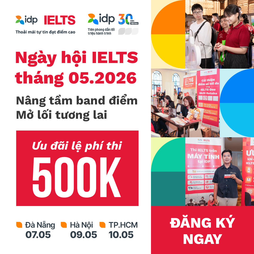 Ngày hội IELTS tháng 05.2026 của IDP sẽ giúp bạn giải quyết tất cả trong 1 buổi.